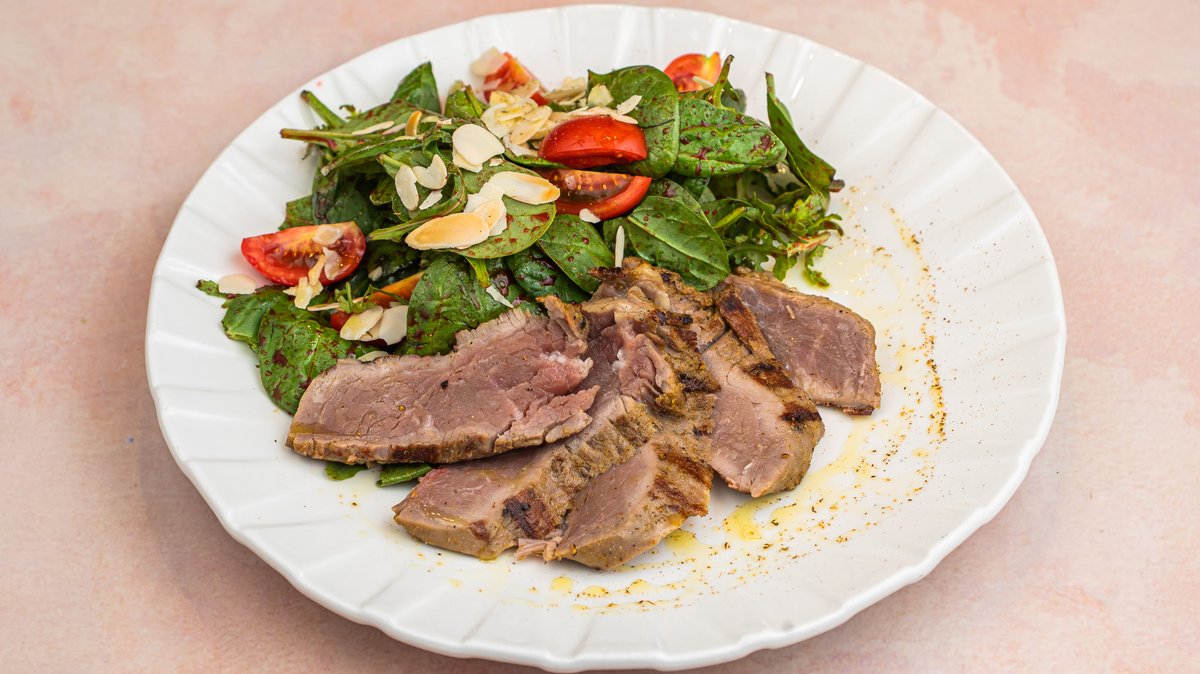 Biftek salata sa bejbi spanacem listicim badema i dresingom od nara