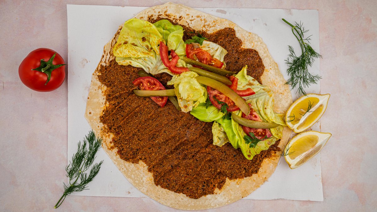 Posne ćufte 150g, zelena salata, paradajz, limunov sok, sos od nara, peršun