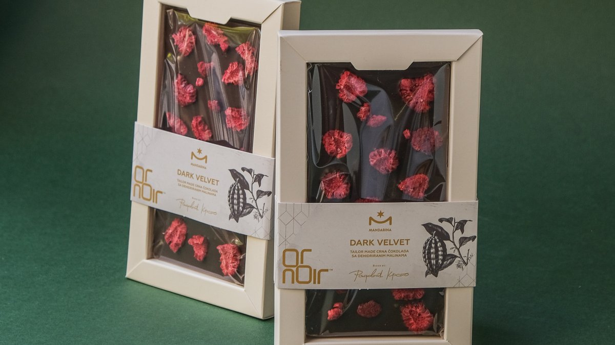 “Dark Velvet” je čokolada od harmonične fuzije kakao zrna poreklom sa Madagaskara i Venecuele. Predstavlja izuzetnu mešavinu koja odiše očaravajućom aromom svežeg, egzotičnog voća. Težina: 150gr