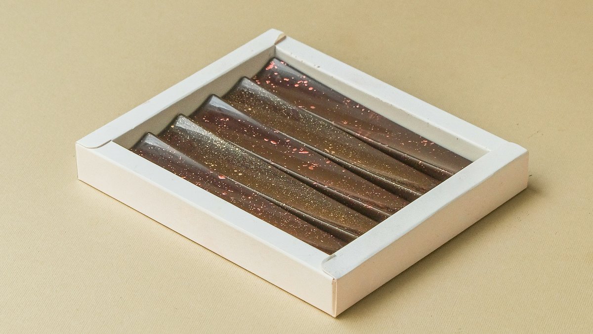 Bela čokolada sa usoljenim pistaćima i dehidriranim malinama; Mlečna čokolada sa lešnikom; Crna čokolada (54% kakaoa) sa bademom i đumbirom; Gold čokolada sa čokoladnim keksom i limetom; Ruby čokolada sa kokosom