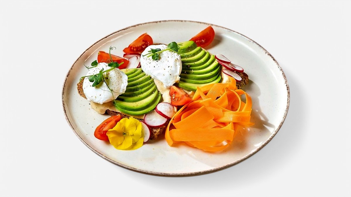 Hleb od spelte, humus, avokado, šargarepa, rotkvice i klice