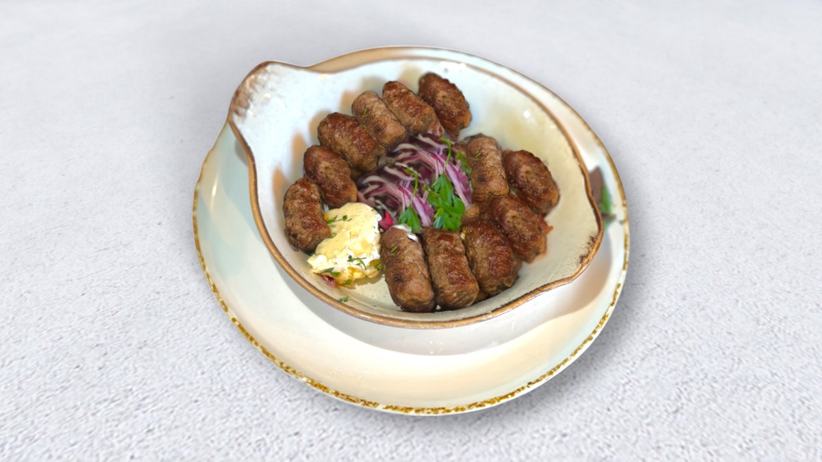 100% juneći ćevapi 300g, kajmak, crveni luk, ljuta paprika