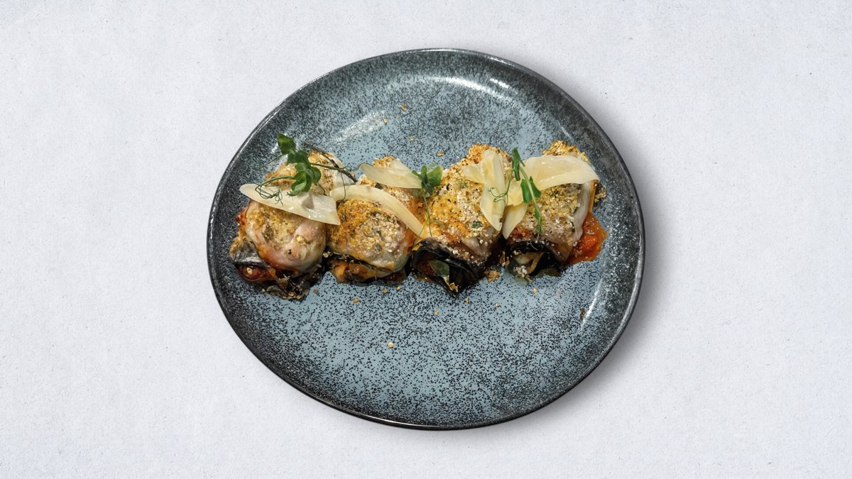 plavi patlidžan, mocarela, parmezan, bosiljak, napolitan sos