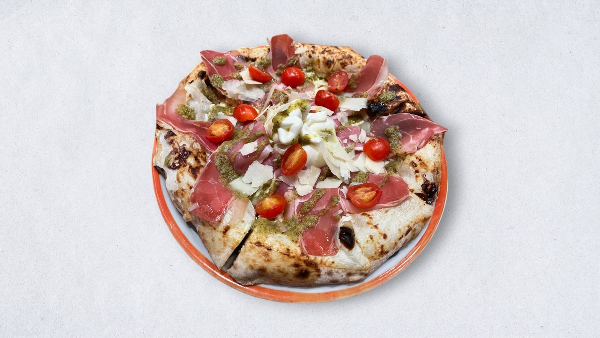 rikota, mocarela, pršuta, pesto sos, parmezan, burata, čeri paradajz