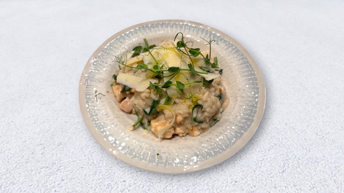 Grilovani fileti dimljene pastrmke servirani sa bebi spanaćem i krompirom
