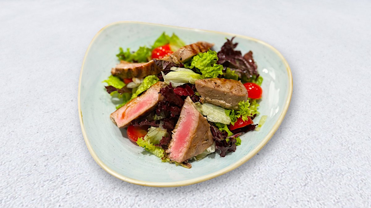 Grilovana sveža tuna 150g, mix zelenih salata, čeri, maslinovo ulje i limunov sok