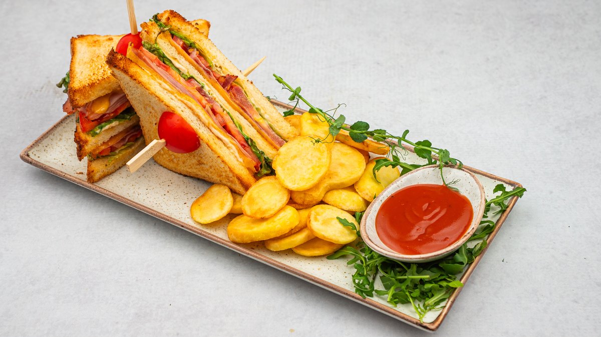 Tost hleb, miks zelenih salata, pršuta, čedar sir, čeri paradajz, dolar čips