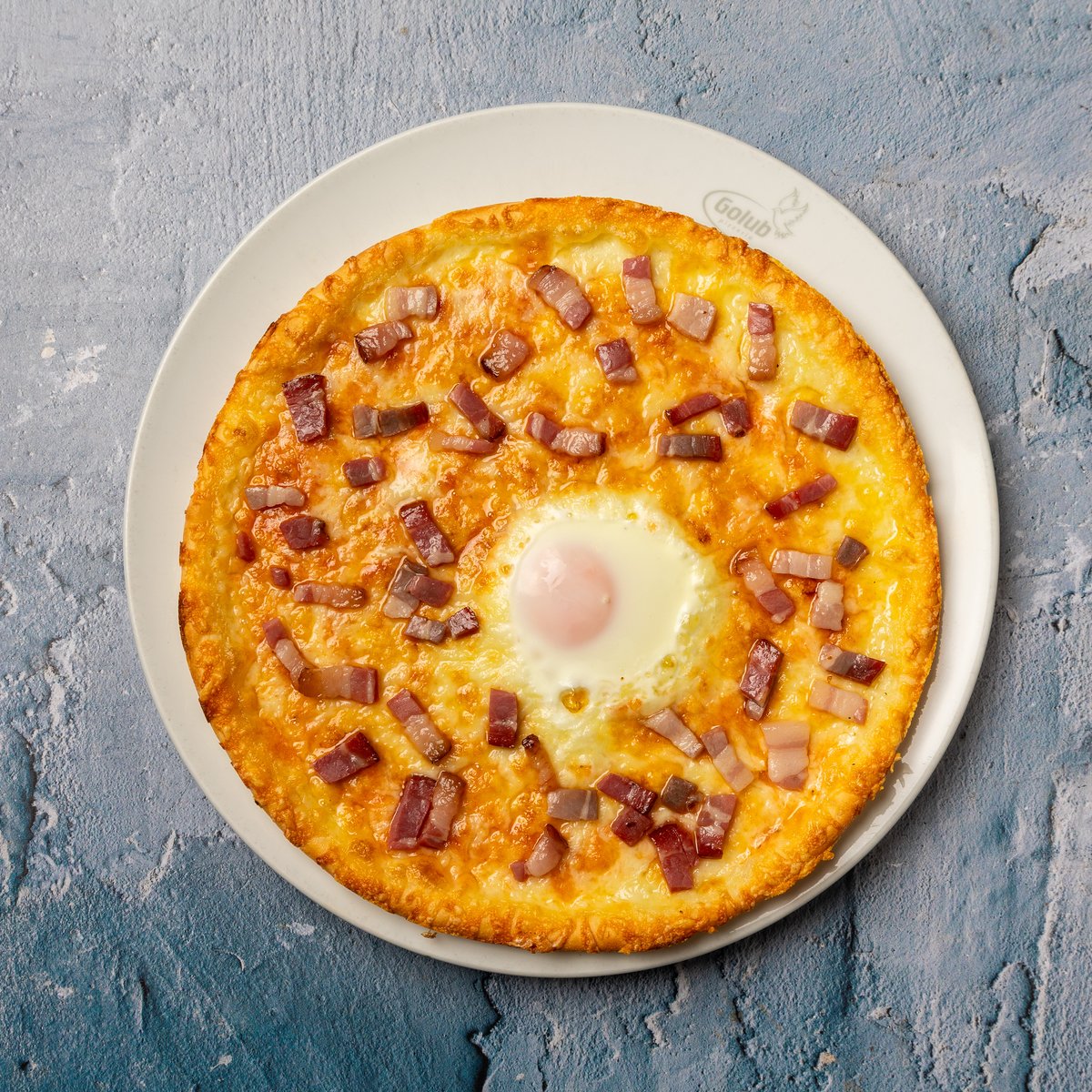 Testo, kečap, sir, šunka, slanina, šampinjoni
