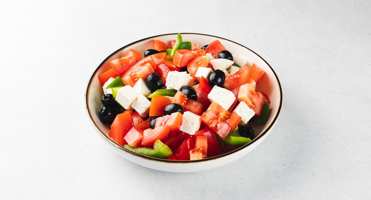 250g, zelena salata, paradajz, krastavac, masline, beli sir