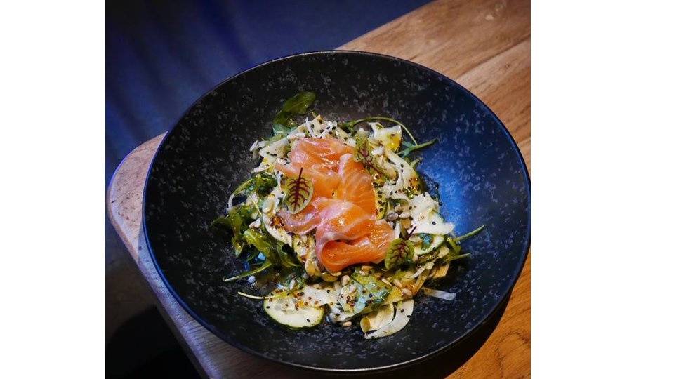 Salata sa lososom i komorcem sa rukolom, kaparom i krastavcem