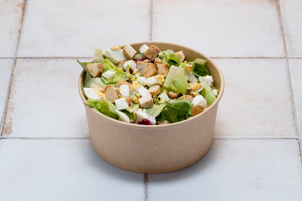 Marinirana piletina, mozzarella, iceberg salata, mix zelenih salata, cherry paradajz, suva brusnica, kikiriki, golica, pesto dresing