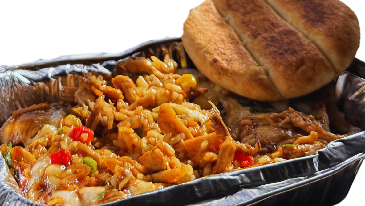 Spremite se za ukusnu kaubojsko-inspirisanu gozbu! Naša Wild West Chicken Bake kombinuje sočnu, drpanu piletinu od 180 grama, topljeni mocarela sir i savršeno začinjen pirinač sa povrćem. Uživajte u svakom zalogaju uz svež pita hleb – idealno za sve koji traže moćan obrok prepun ukusa divljeg zapada! Naručite sada i osetite duh divljine u svom obroku!