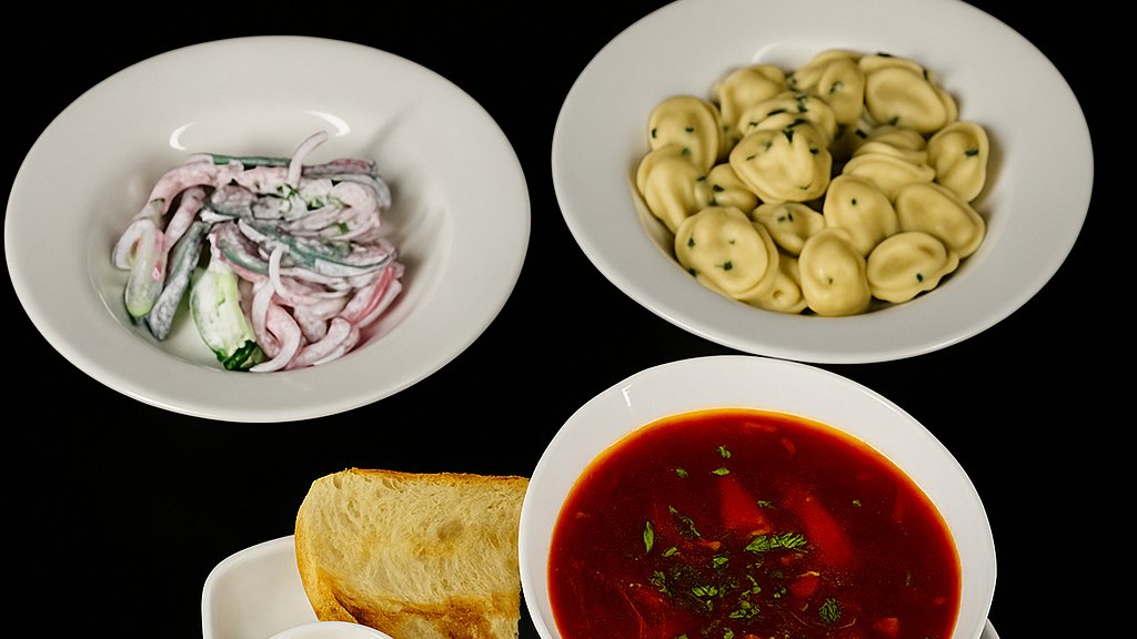 Combo lunch at a great price! Salad, soup, and a main course. Portion size: 800 g. Available at your table on weekdays until 5:00 PM.