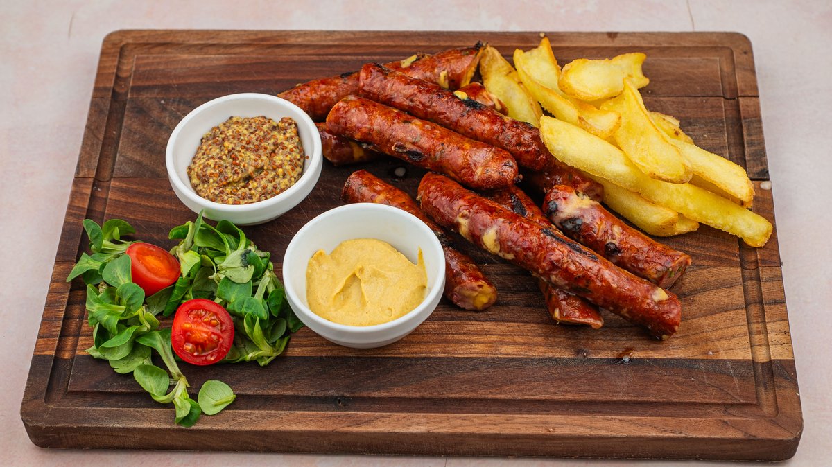 150g burger mesa, čedar, pančeta, burger dresing, miks salata, paradajz, zemička