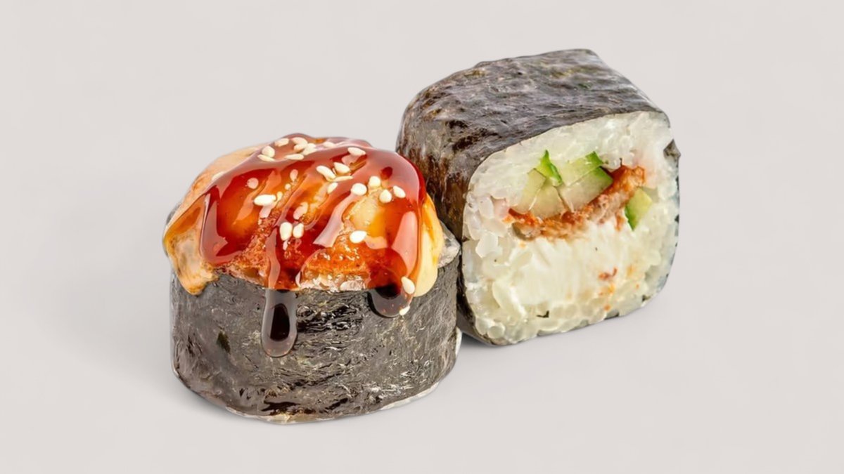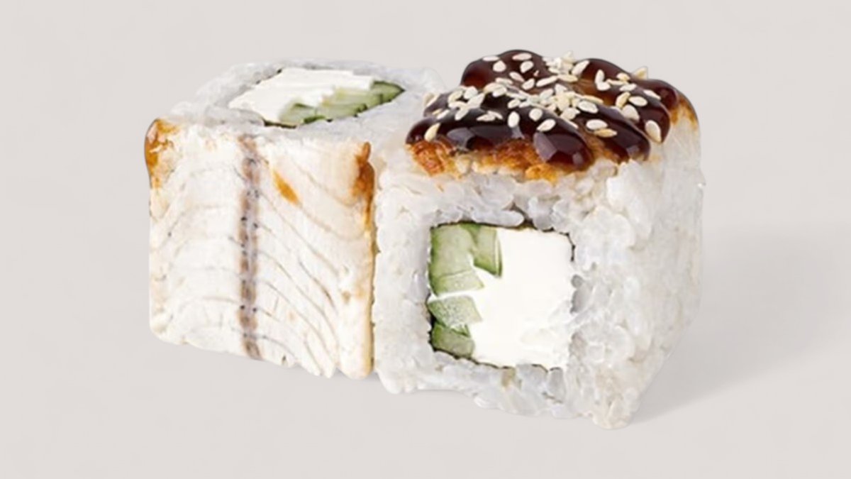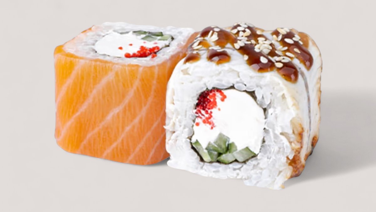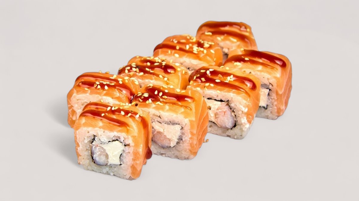 Rolnice sa škampima, krem sirom, lososom, Unagi sosom i susamom