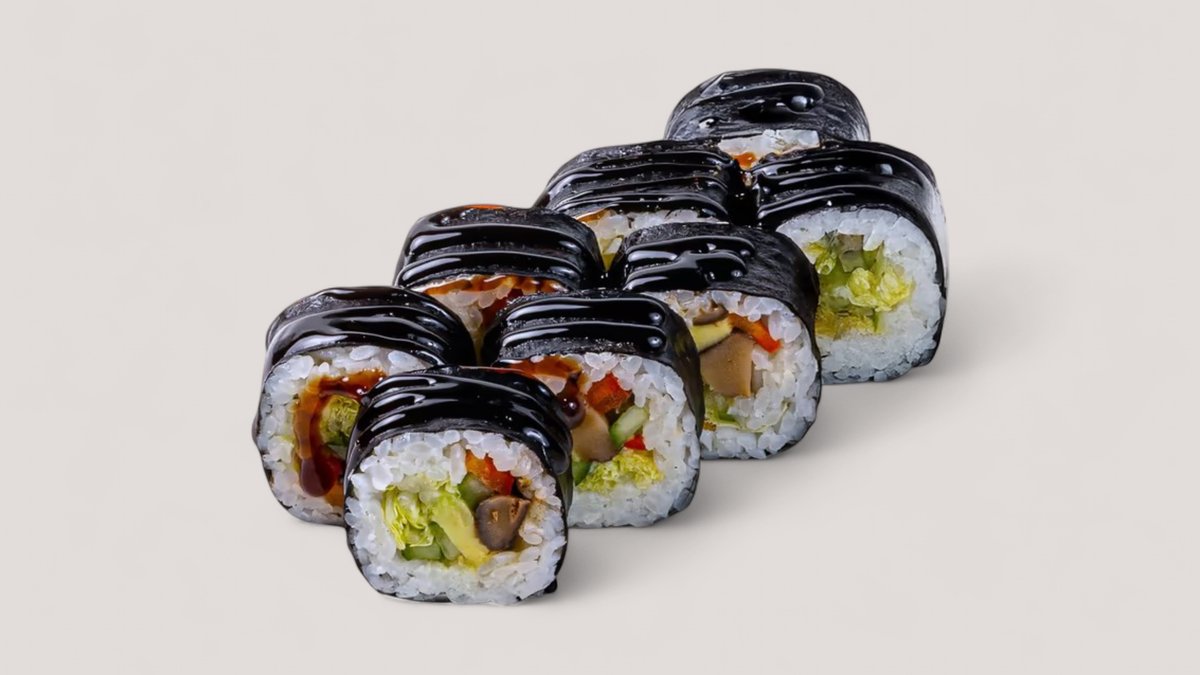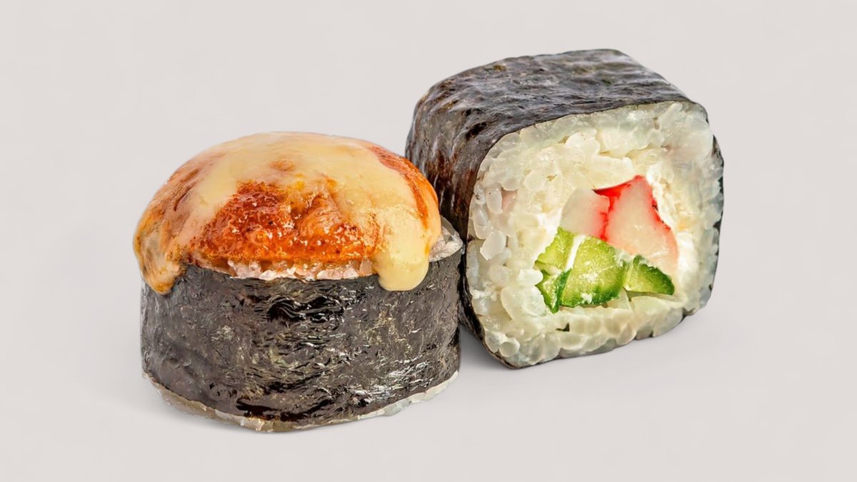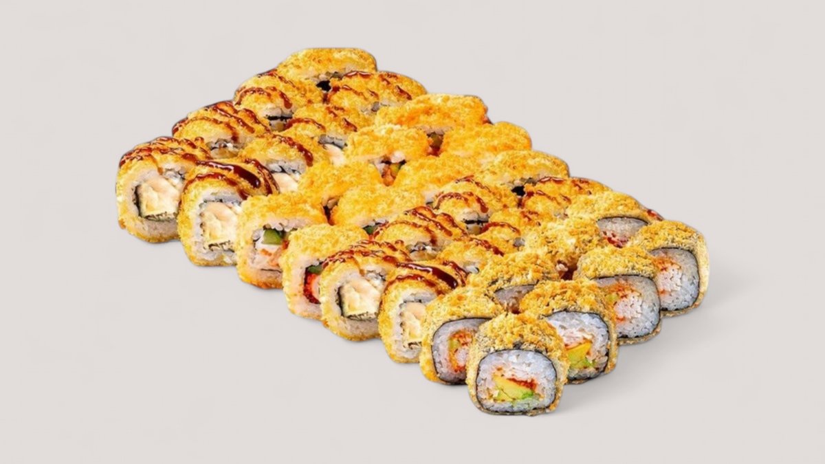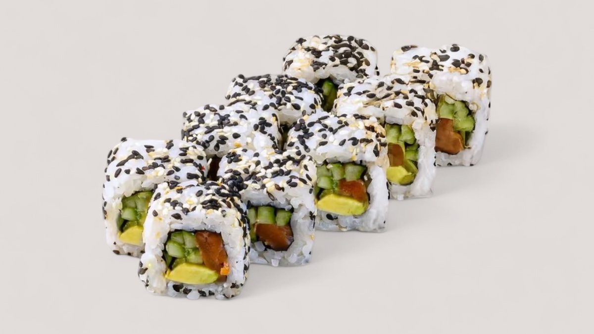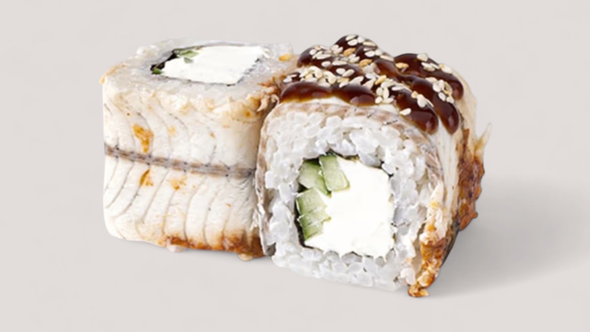 Rolnice sa škampima, krem sirom, lososom, Unagi sosom i susamom