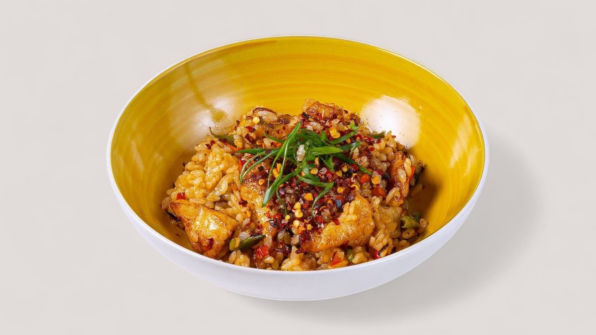Prženi pirinač s piletinom, povrćem i ljutim sosom