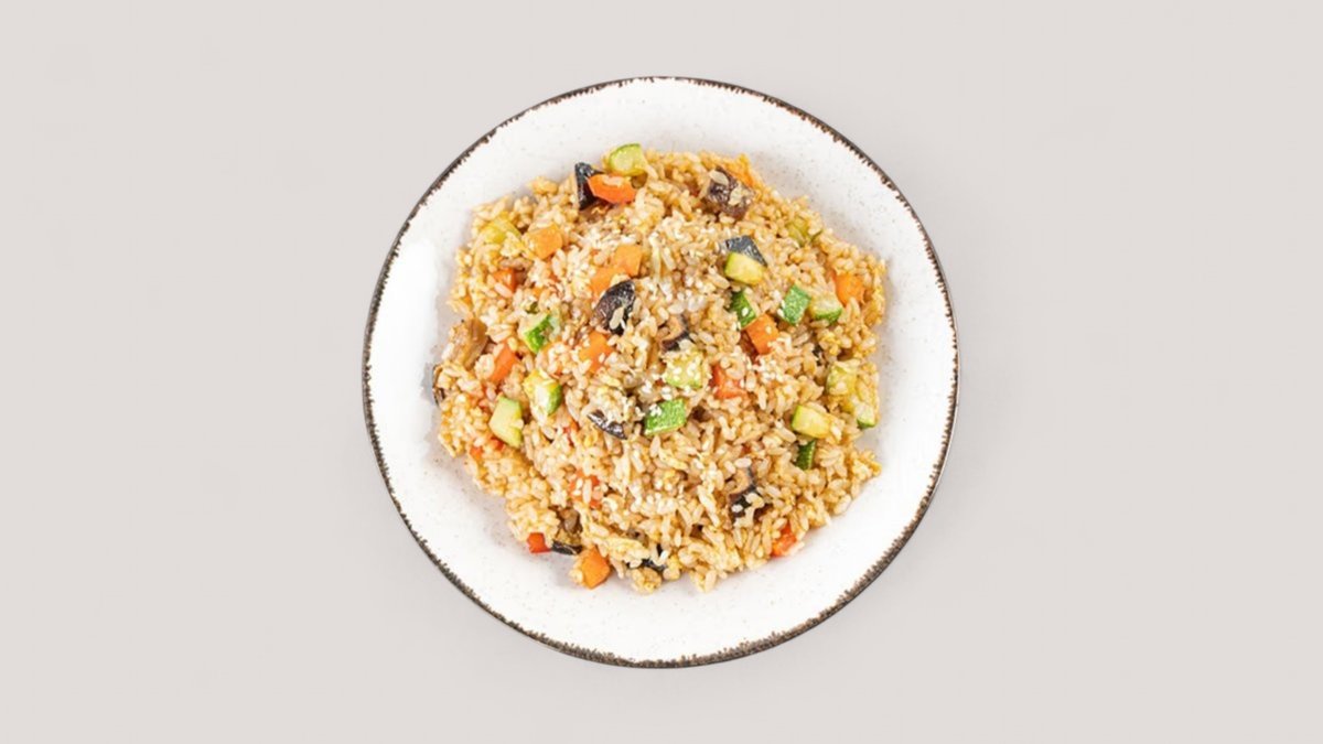 Pirinač, šitake pečurke, terijaki sos, susam, tikvica, šargarepa, slatka paprika