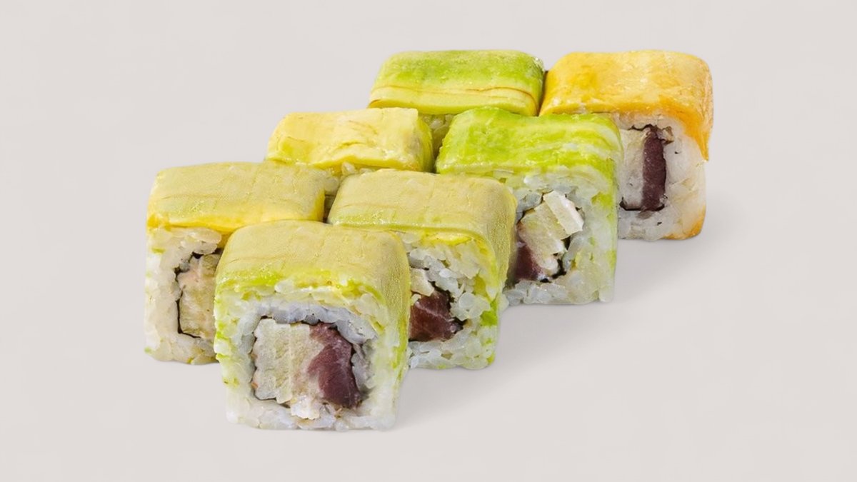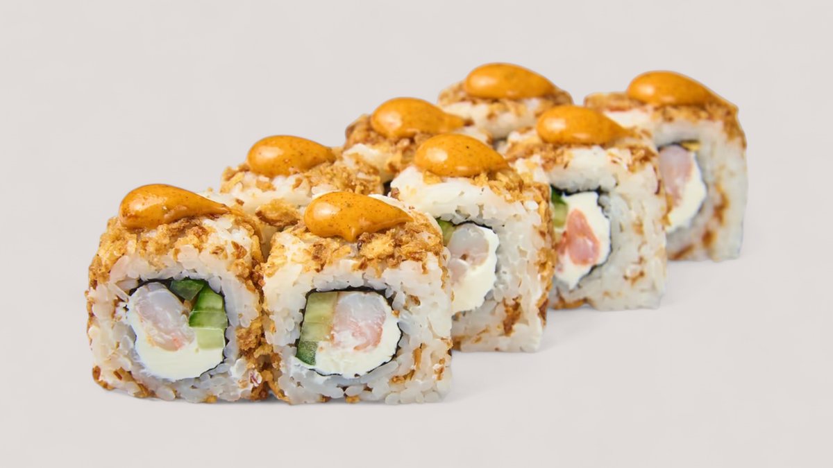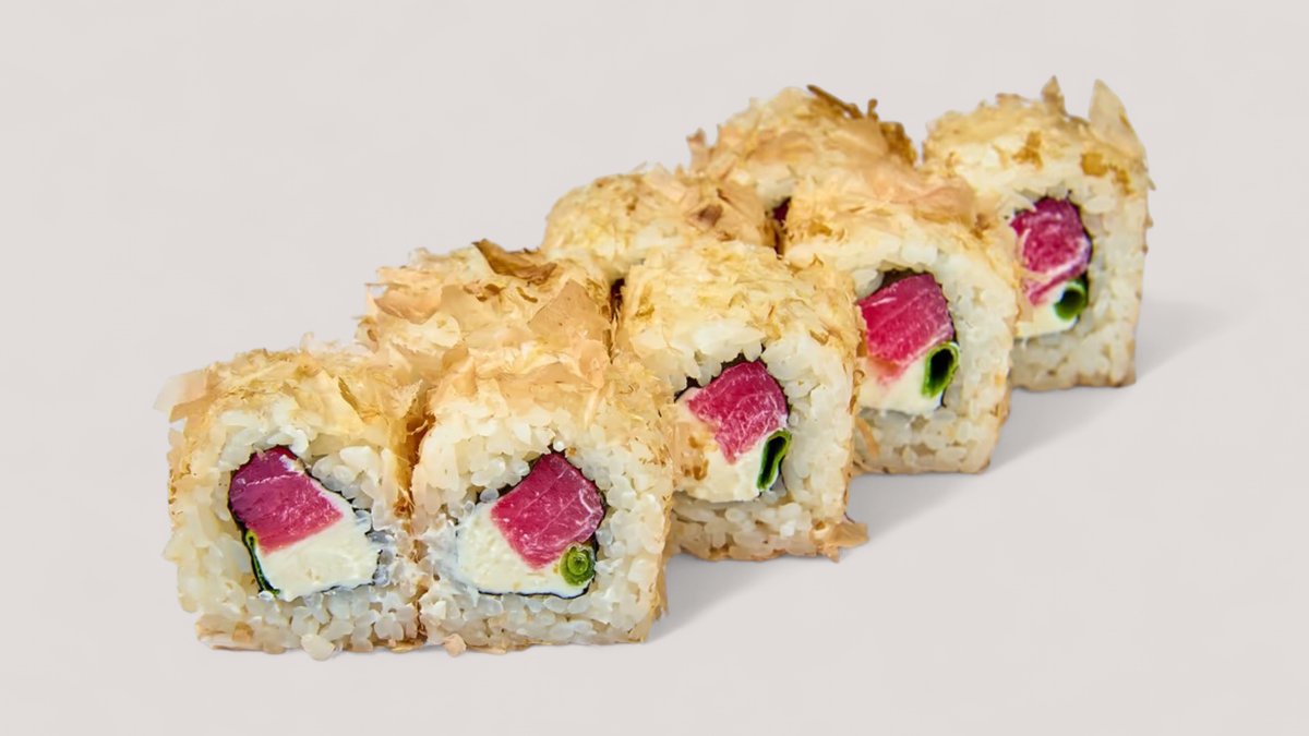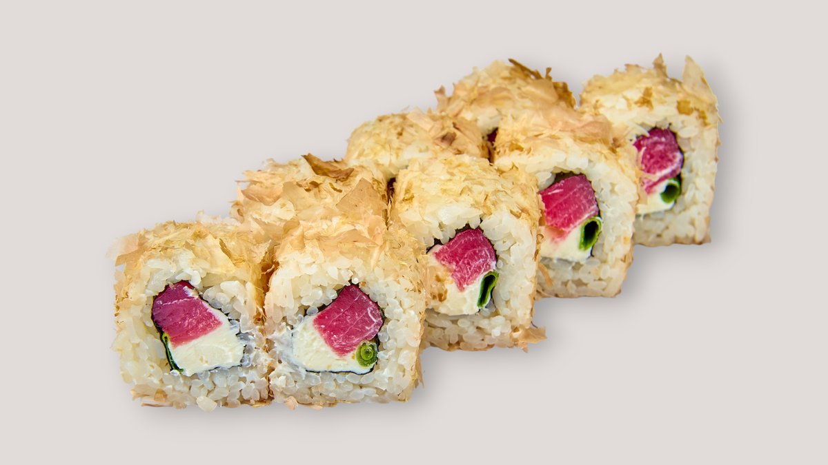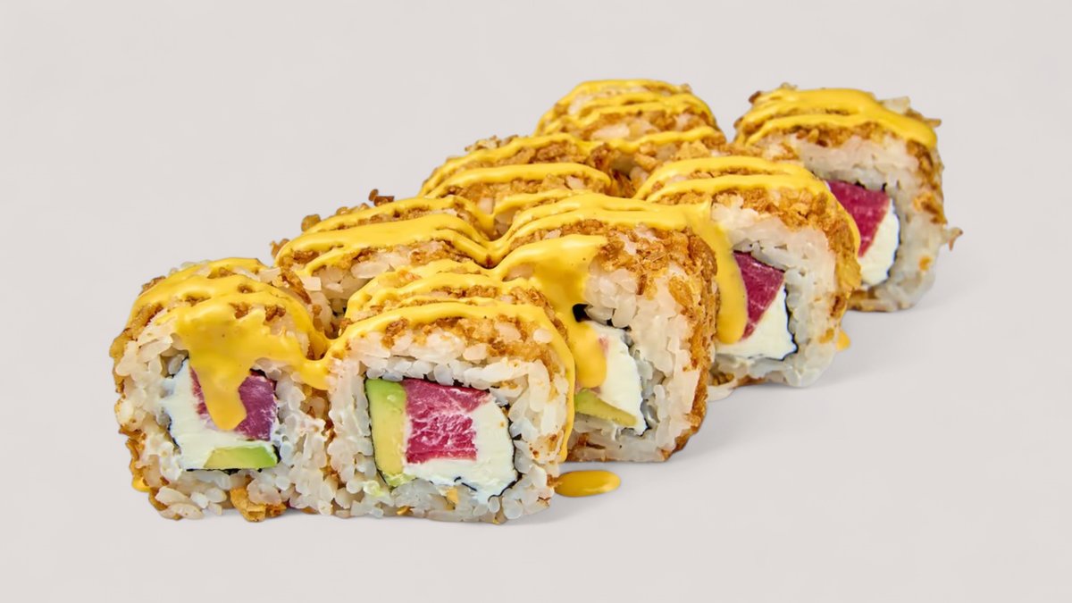 Tuna, avokado, krem sir, prženi luk, mango sos — lagan i osvežavajući rol sa savršenim balansom slanog i slatkog