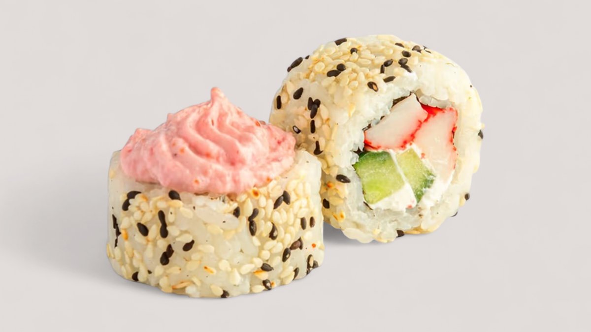 Rolnice sa krabom, paradajzom, krem sirom, susamom i Spajsi sosom