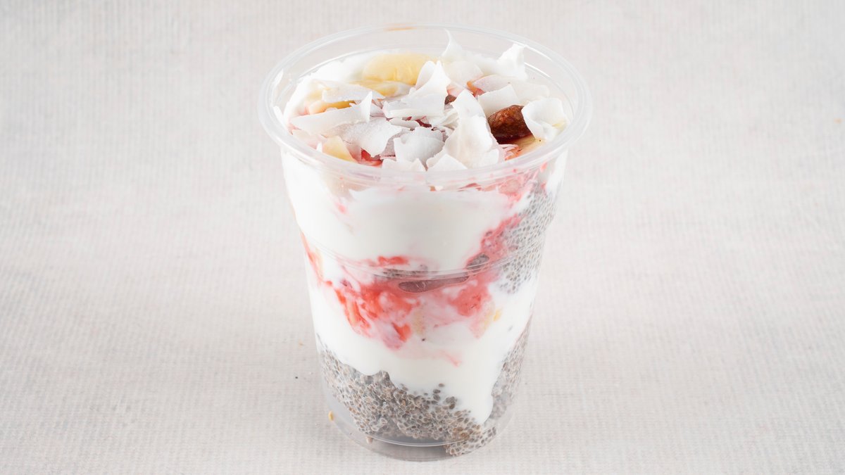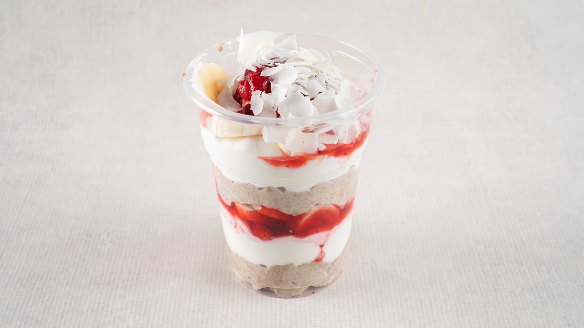 Čia, biljno mleko, med, grčki jogurt ,kikiriki puter, šumsko voće, banana