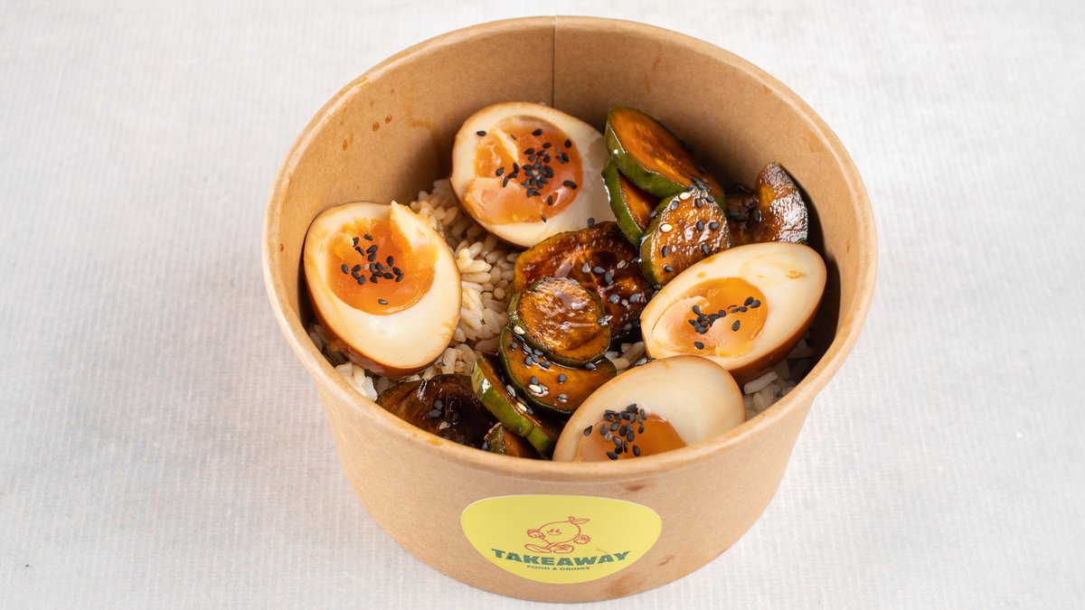 Marinirana jaja u korejskom sosu, pirinač, marinirani krastavac, soja sos, začini