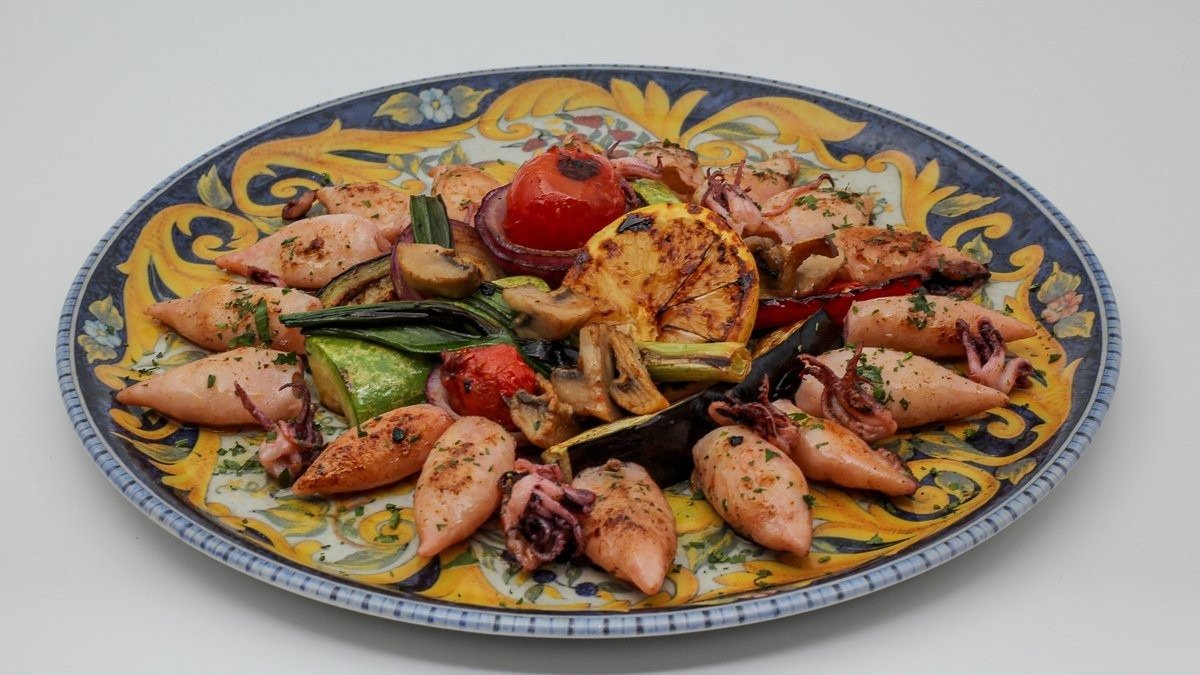 Kremasta bela pasta sa tikvicama i grilovanim lososom