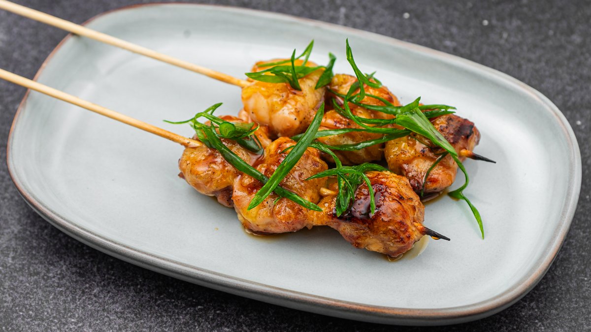 Sočni pileći ražnjići pečeni na grilu, glazirani tare ili miso sosom kao u tokijskim izakayama. Slano-slatko, dimno i neodoljivo — idealan prvi zalogaj za ulazak u naš Tsunami talas.