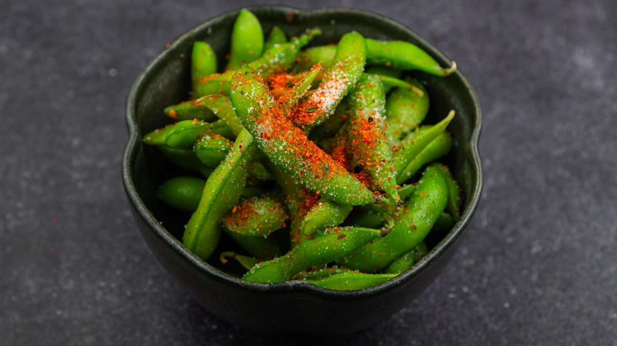Zeleni soja-pasulj u chili–togarashi miksu. Brz, pikantan japanski hit.