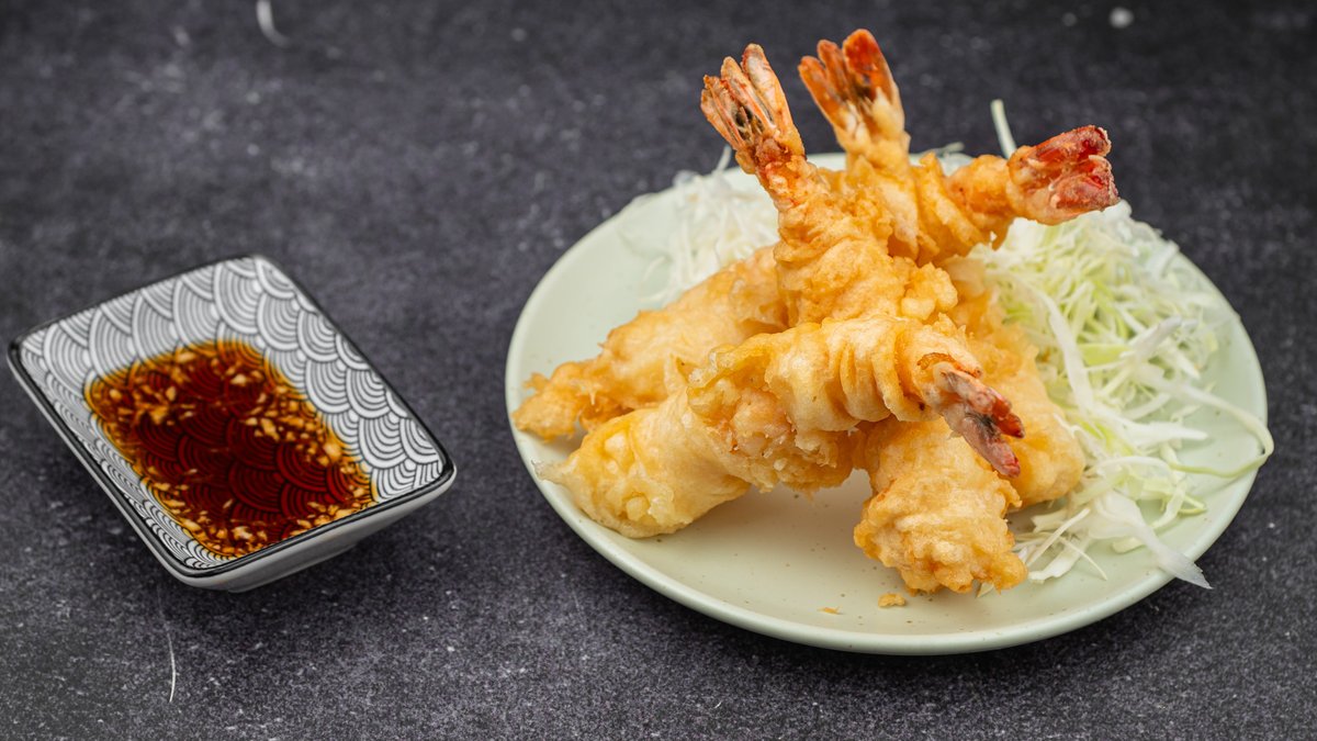 Kraljevski škampi u laganoj japanskoj tempuri. Hrskavo, sočno, pravi klasik.