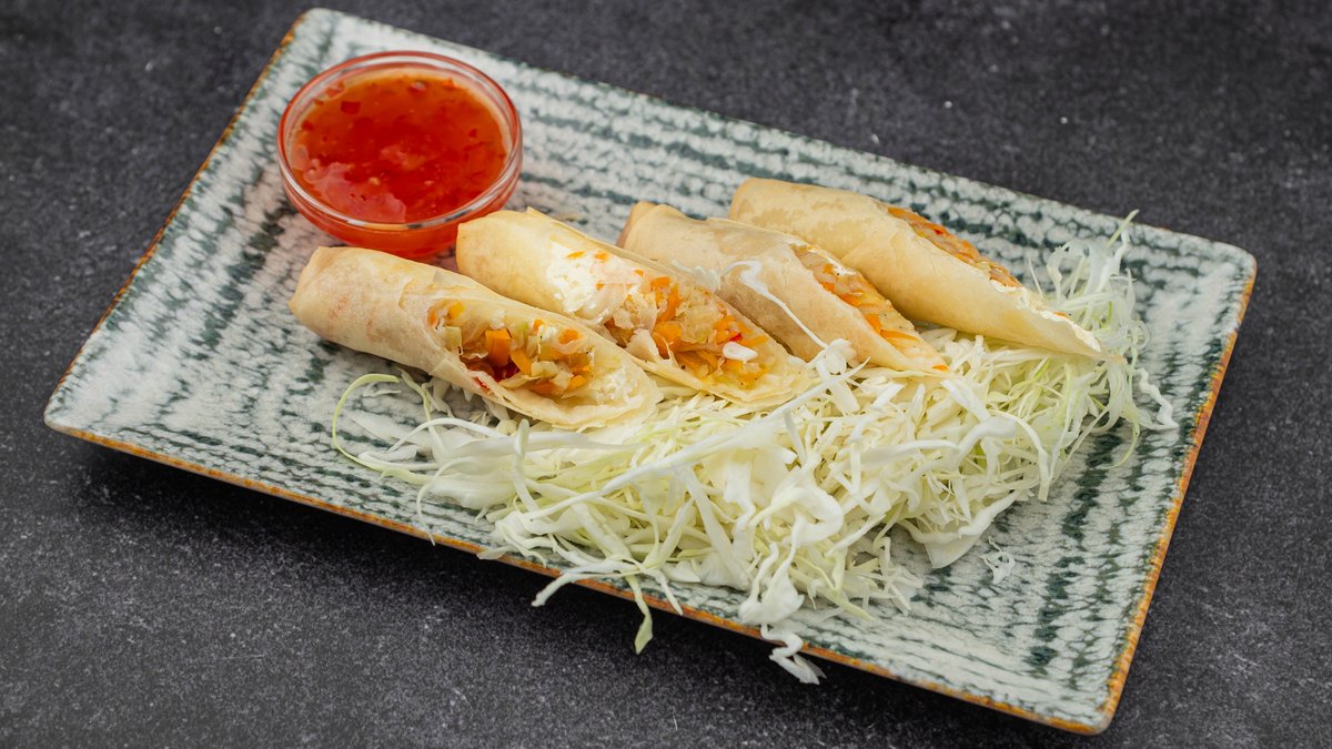 Japanska prolećna rolnica sa Philadelphia sirom i povrćem. Hrskavo spolja, kremasto iznutra.