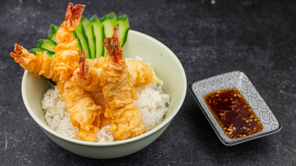 Kraljevski tempura škampi na toplom pirinču, uz japanski tendon preliv. Lagano, elegantno, pun ukus.