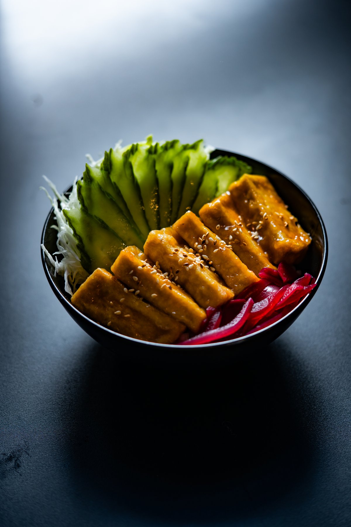 DONBURI - tradicionalno japansko jelo — činija toplog pirinča sa hrskavim tofu komadima u miso sosu. Lagano, biljno i umami.