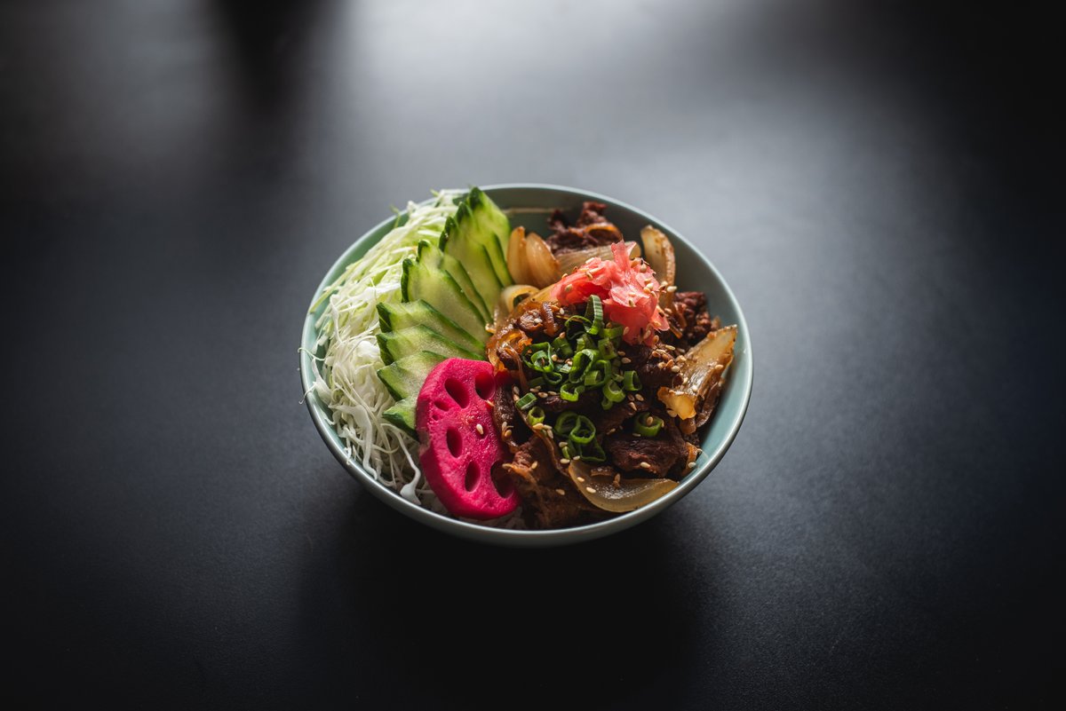 DONBURI - tradicionalno japansko jelo — činija toplog pirinča sa tanko sečenim juneći stejkom dinstanom u slano-slatkom shoyu dashiju.