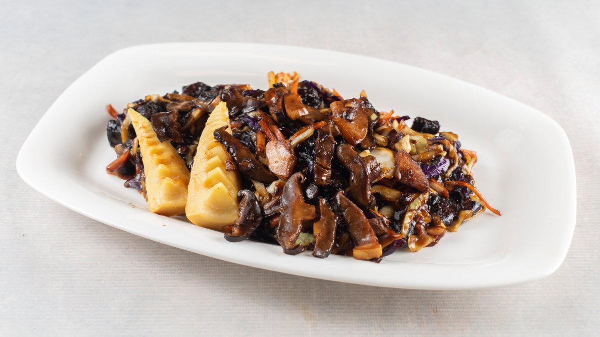 Svinjetina sa bambusom I kineskim pečurkama u soja sosu 350g