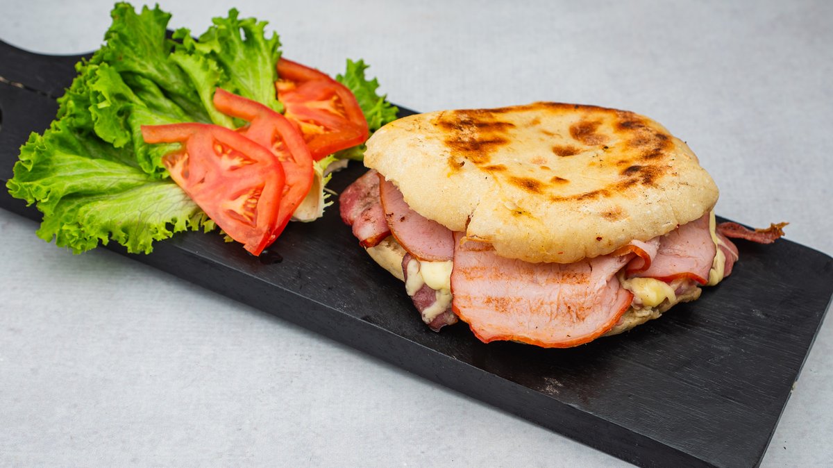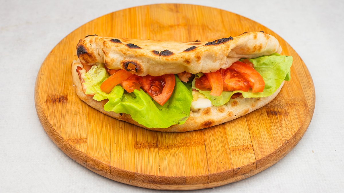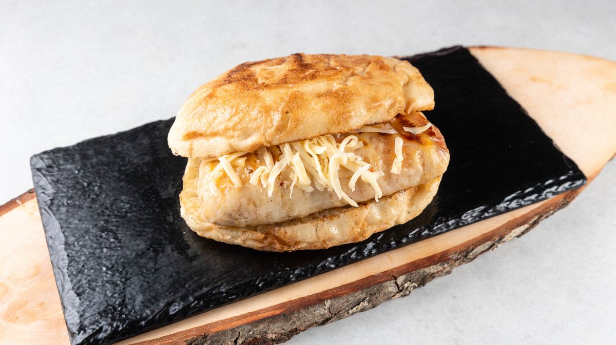 Sočna pljeskavica punjena tri vrste sira i dimljenim vratom, uz luk i tucanu papriku za pravi gurmanski užitak