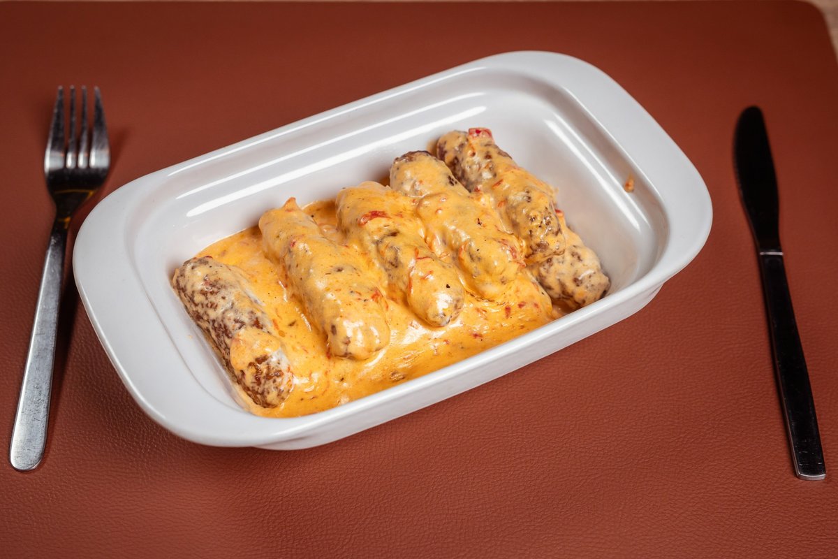 Kulen, kačkavalj, ajvar, majonez, šampinjoni, čili sos, jalapeno, pomfrit