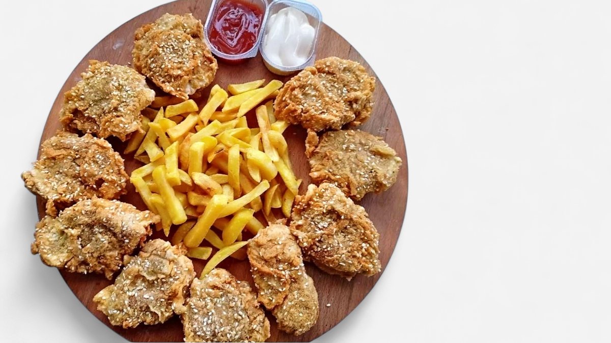 Pohovane sojine snicle, pomfrit,somun i kecap