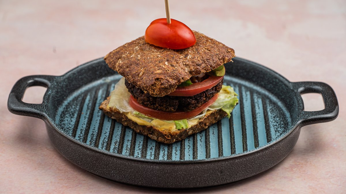 Tofu, orasi, bukovača, avokado, paradajiz, zelena salata, kiseli krastavčići, hrono lepinja, sosevi. (Posno)