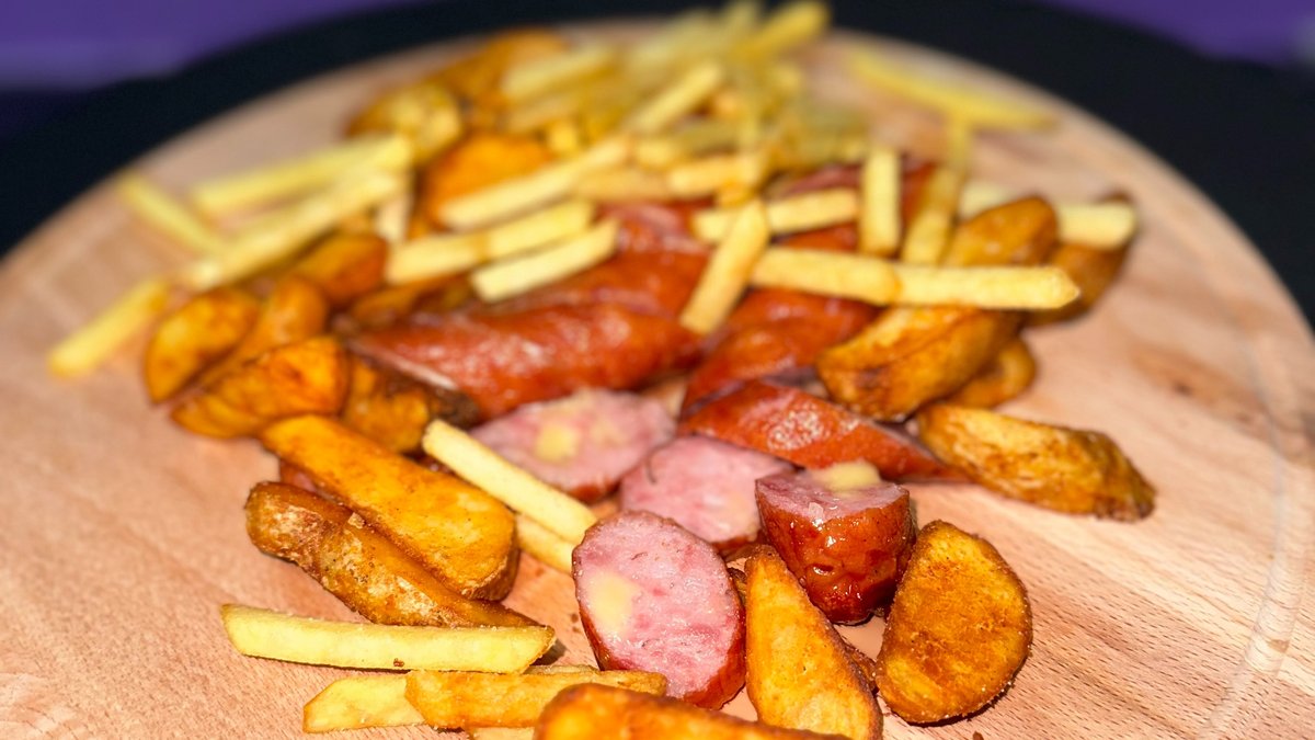 Kobasica, pekarski krompir, hleb