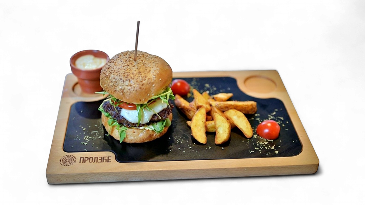 pileći file, slanina,pizza sir, dresing+prilog pomfrit/wedges