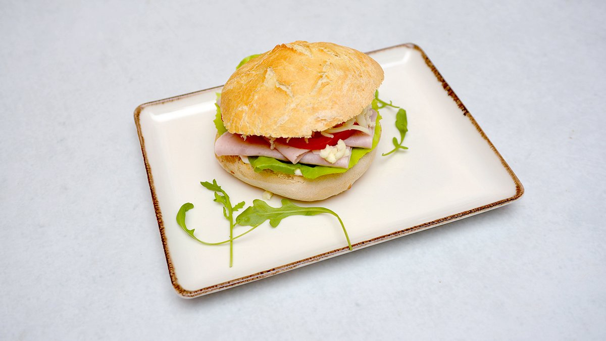 šunka, kačkavalj, lepinja, blagi sos, paradajz, zečena salata