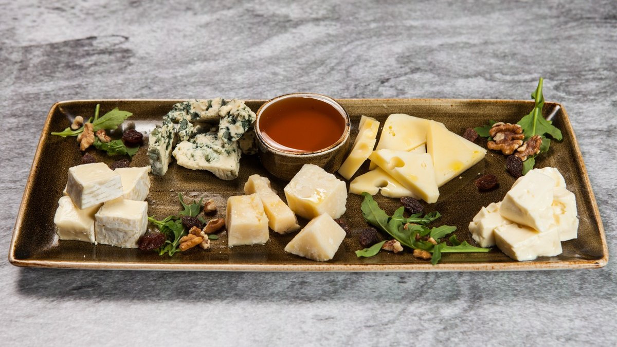 dva jaja, pohovani kackavalj, paradajz, krastavac, rukola i masline