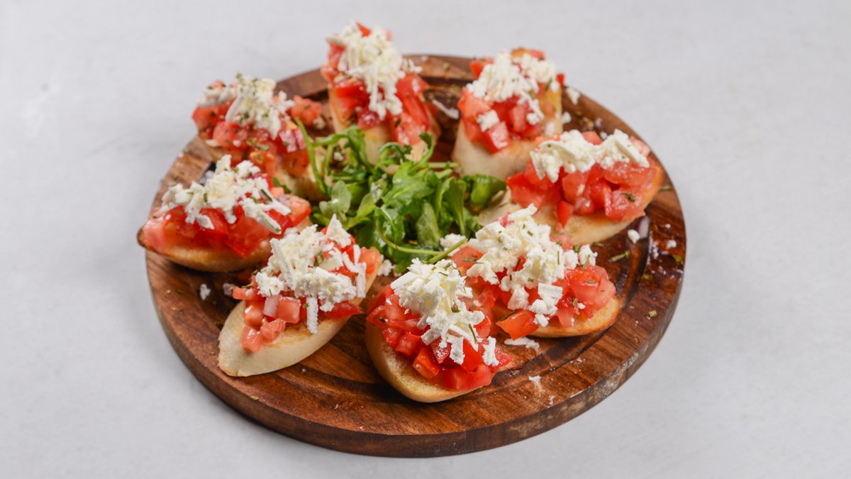 zapecene brusketi sa mocarelom, paradajzom i pršutom