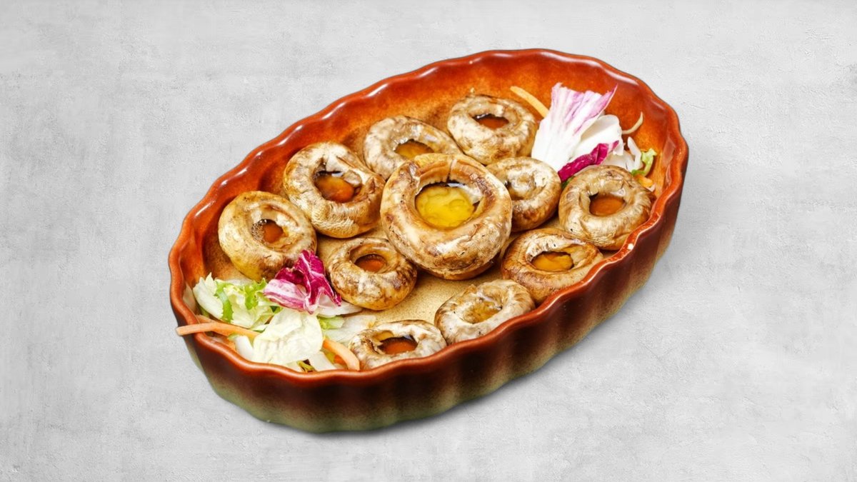 Pohovani pileći batak u krem sosu od šampinjona sa začinjenim kriškama krompira