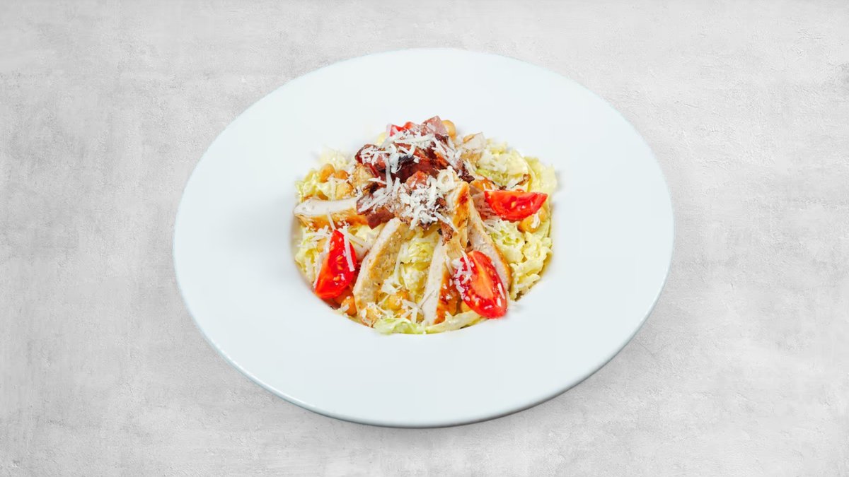 iceberg salata, rukola, piletina, krispi pančeta, dressing, parmesan i čeri