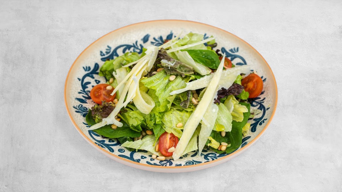 miks zelenih salata, gorgonzola, parmezan i topljena mocarela sa prepečenim orasima