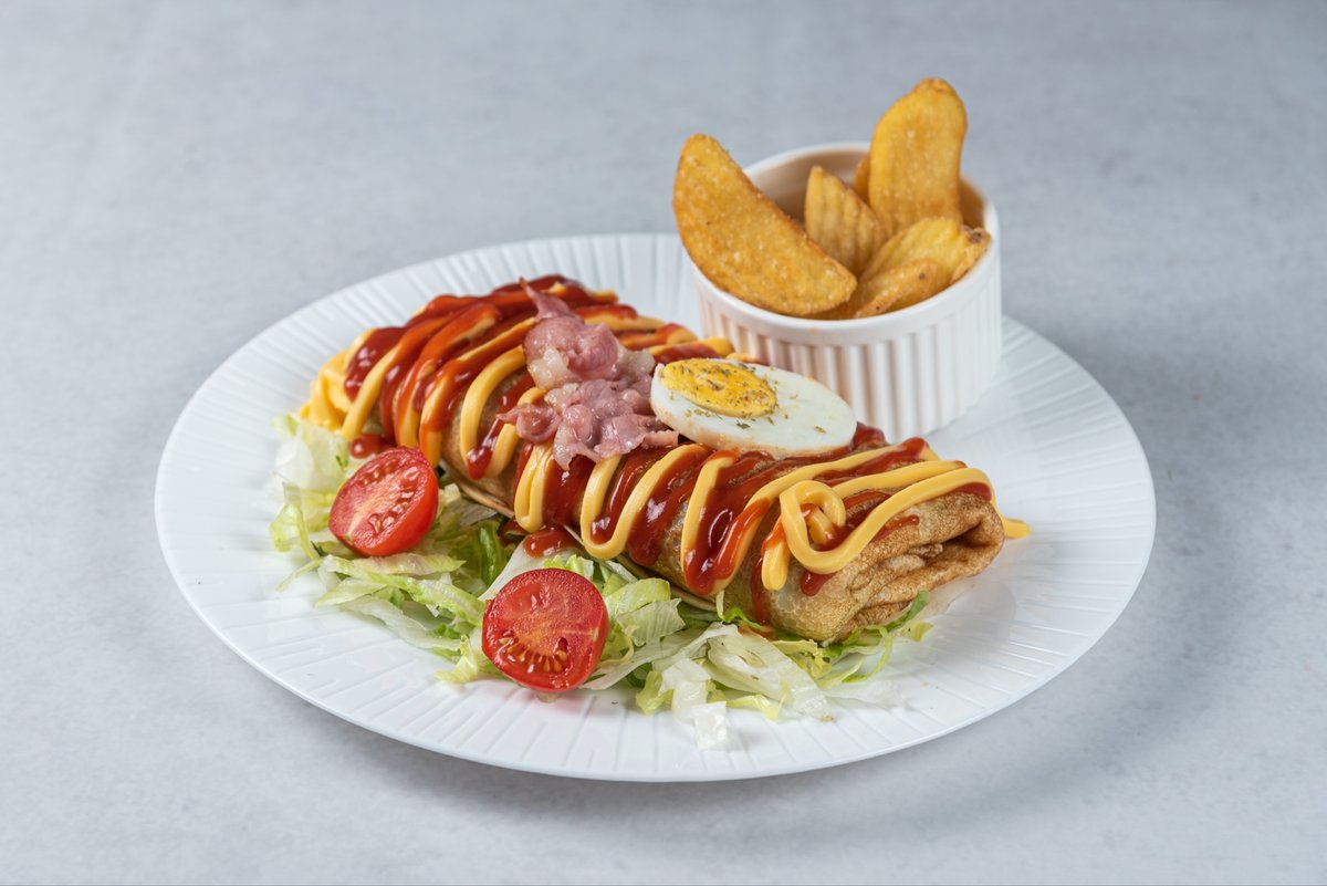 pavlaka, gauda, šunka, prilog Crispy krompir