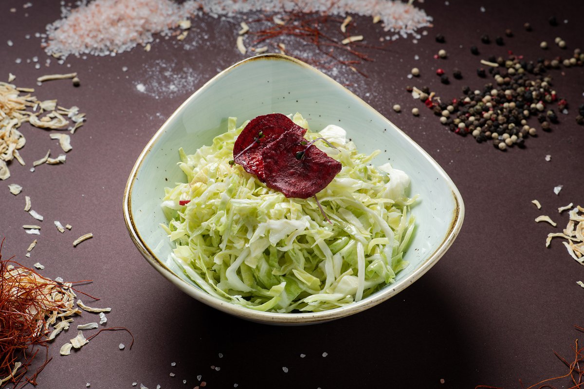 Sveža salata od tanko sečenog kupusa začinjena uljem, sirćem i prstohvatom soli.