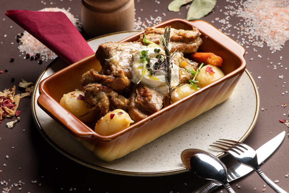 Sporo pečena teletina u rerni, šargarepa, mladi krompir, mladi kajmak